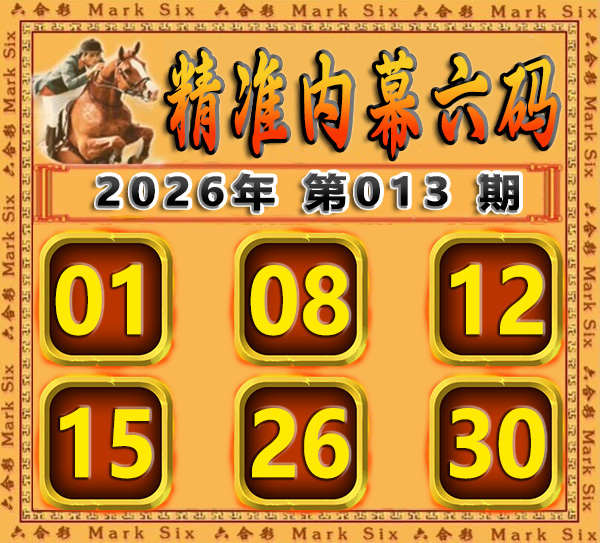 013期:【精准内幕】 ♦️⑥码中特♦️ 01.08.12.15.26.30】开:01