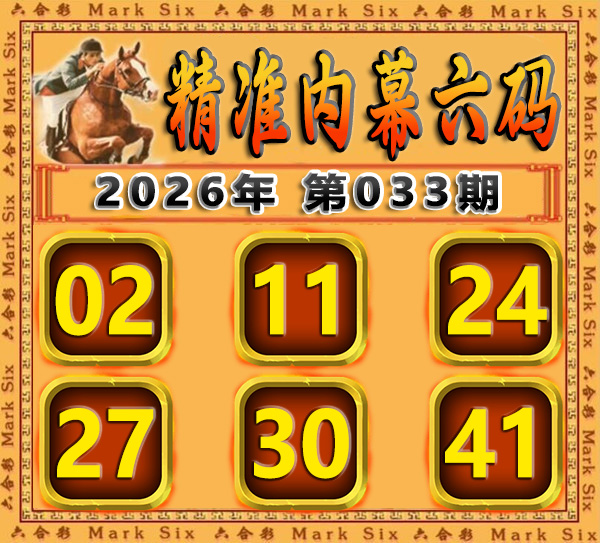 033期:【精准内幕】 ♦️⑥码中特♦️ 【02.11.24.27.30.41】开:41