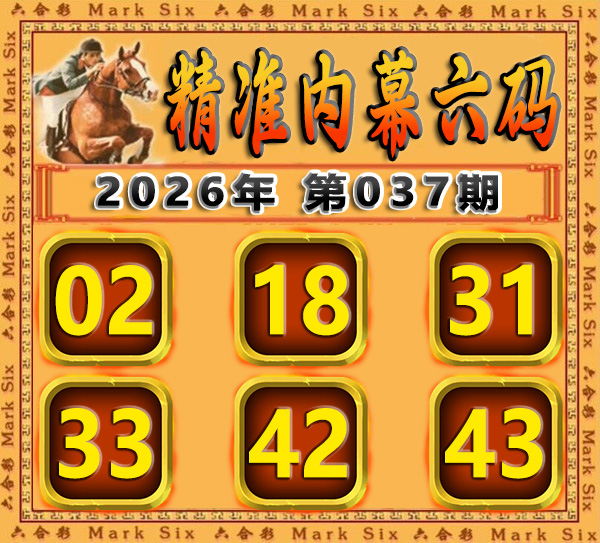 037期:【精准内幕】 ♦️⑥码中特♦️ 【02.18.31.33.42.43】开:43