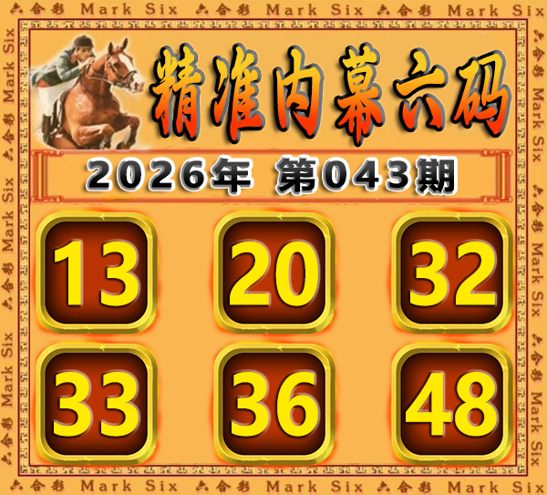 043期:【精准内幕】 ♦️⑥码中特♦️ 13.20.32.33.36.48】开:13