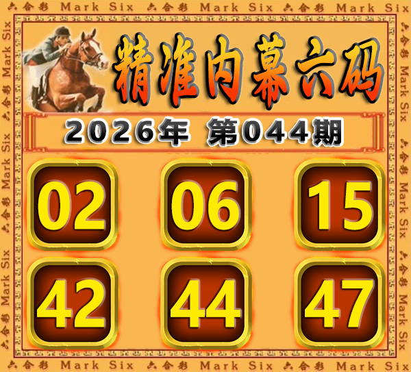 044期:【精准内幕】 ♦️⑥码中特♦️ 【02.06.15.42.44.47】开:19错