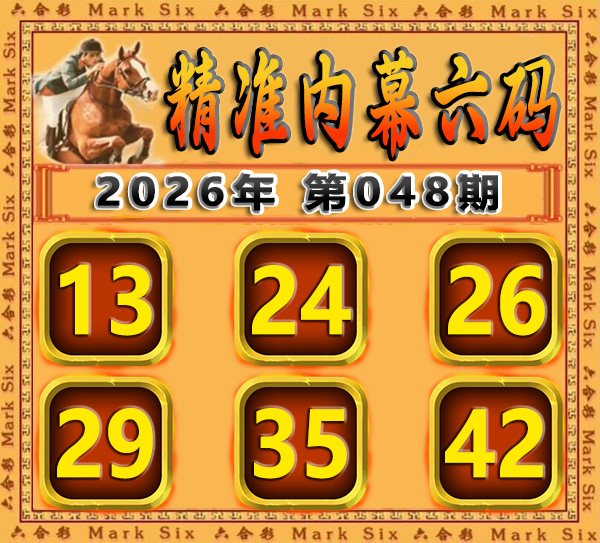 048期:【精准内幕】 ♦️⑥码中特♦️ 【13.24.26.29.35.42】开:24